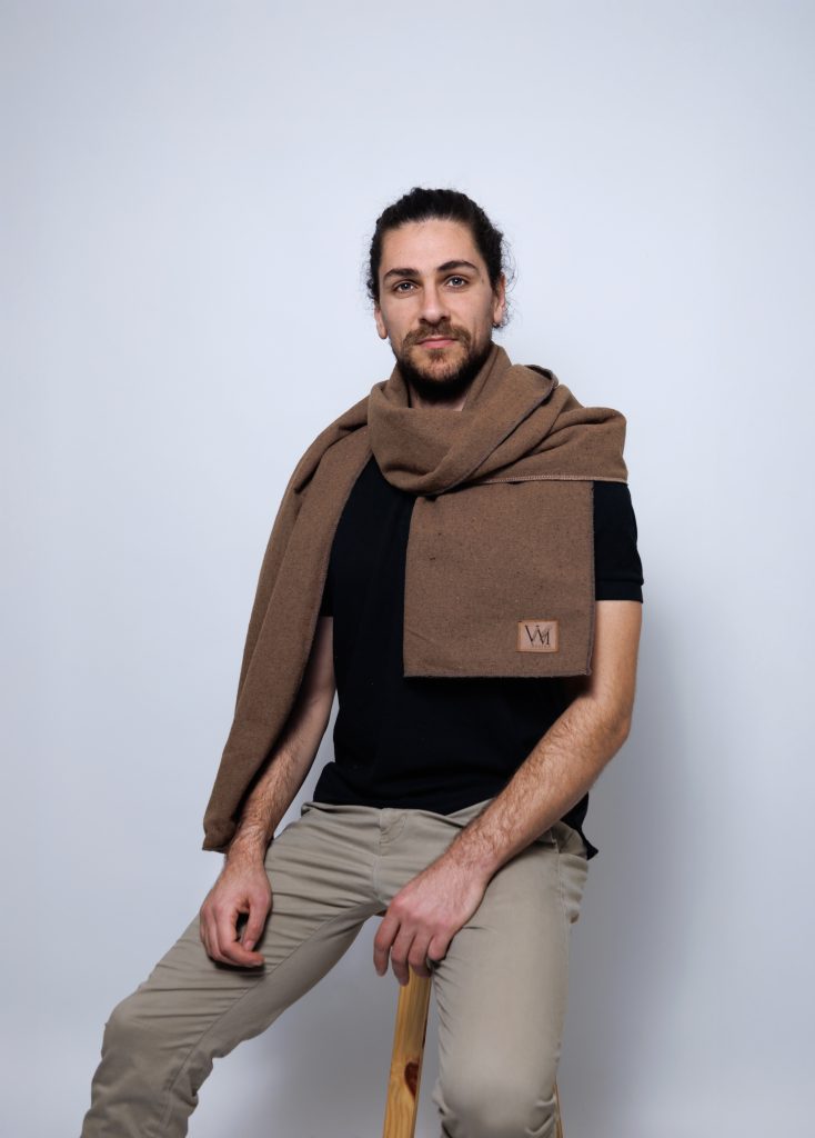 Maxi bufanda café tierra, sobria y versátil. Su diseño liso sin estampado resalta por su sofisticación minimalista, perfecta para combinar con cualquier look.